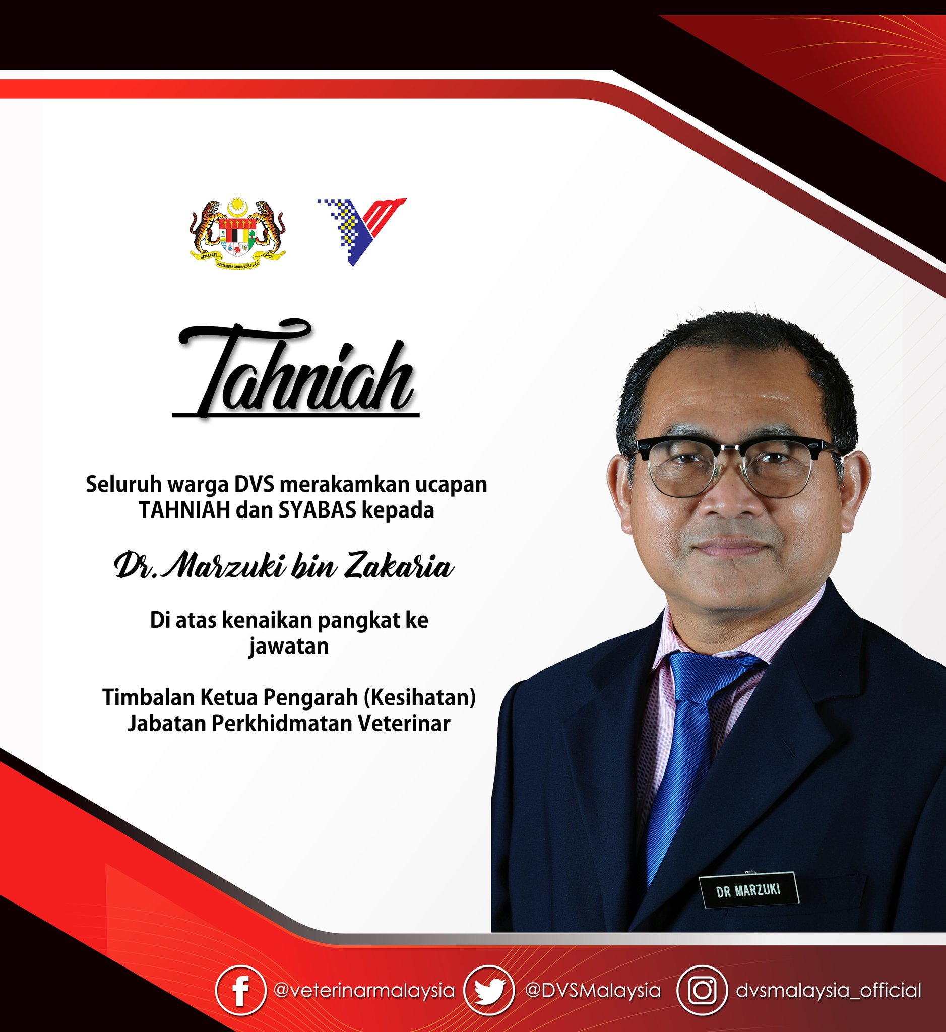 Jabatan Perkhidmatan Veterinar On Twitter Seluruh Warga Dvs Mengucapkan Tahniah Di Atas Kenaikan Pangkat Kepada Dr Marzuki Bin Zakaria Timbalan Ketua Pengarah Kesihatan Dato Dr Norlizan Bin Mohd Noor Timbalan Ketua